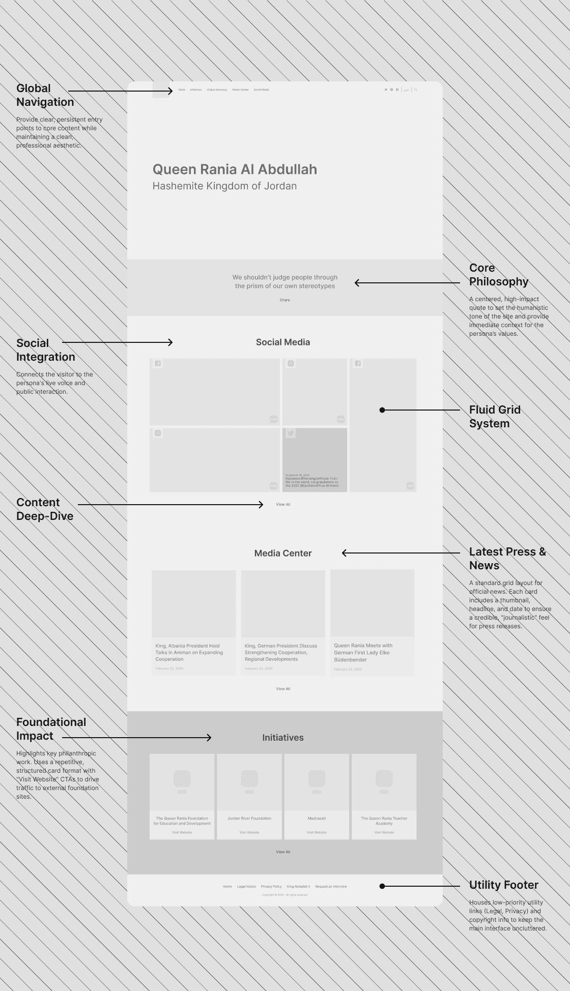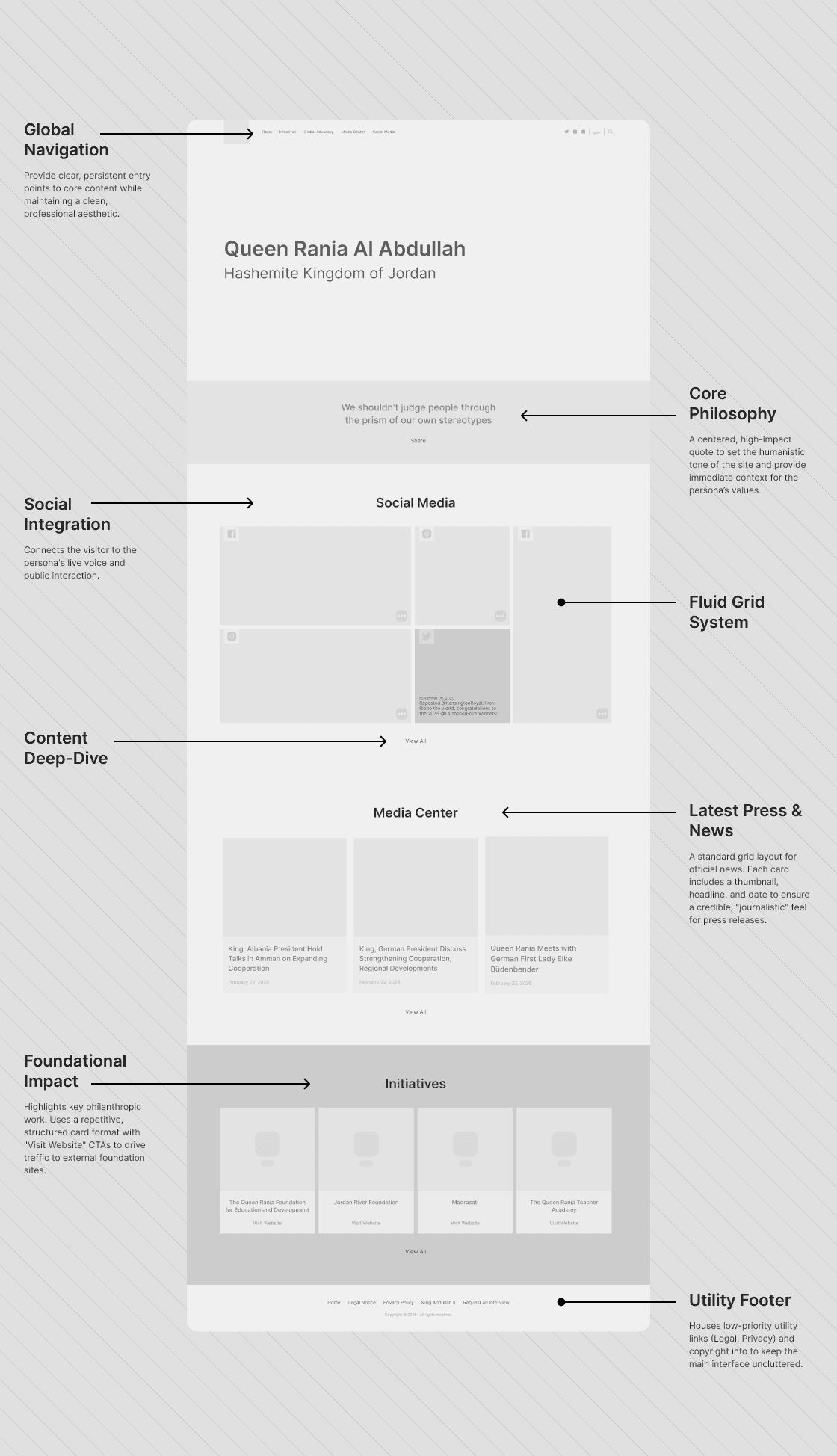 Designing for Global Influence Creating an authentic space for a monarch is a delicate balancing act. A strict corporate site wouldn't reflect Her Majesty's approachable warmth, while a standard blog wouldn't convey her global authority. We needed a precise, culturally sensitive digital architecture that could elegantly house her flagship initiatives.